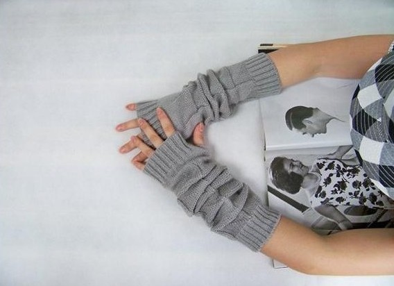 Promotion"Free Shipping"New autumn winter fashion knitting additional length warm gray mitten