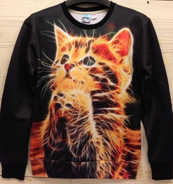 3D Psychedelic Style Cute Praying Cat Printed Sweater Sweatshirt 4 Sizes